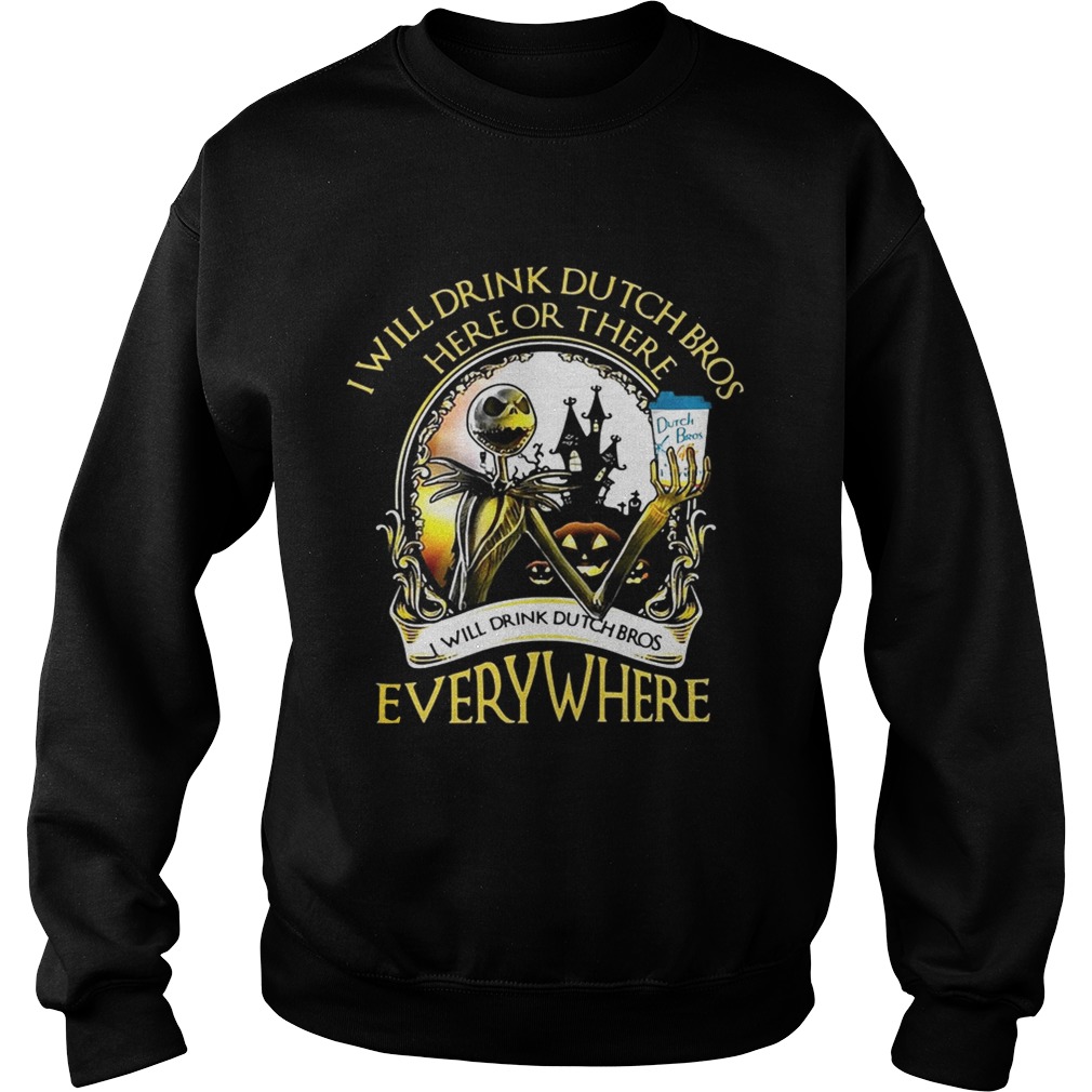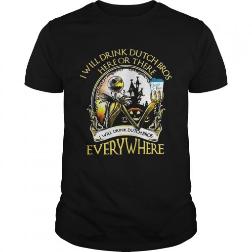 Jack Skellington I will drink Dutch Bros here or there or everywhere shirt, hoodie, sweater, longsleeve and ladies t-shirt