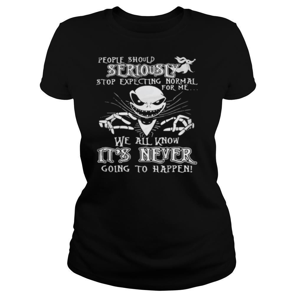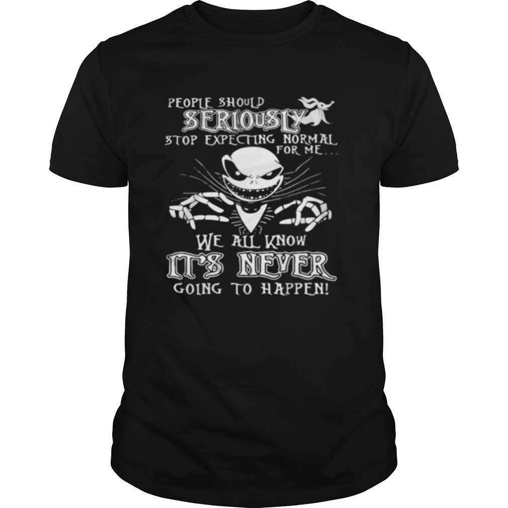 Jack skellington people should seriously stop expecting normal for me we all know it’s never going to happen shirt, hoodie, sweater, longsleeve and ladies t-shirt