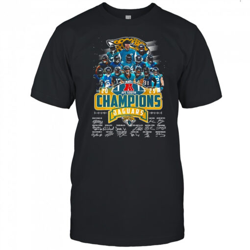 Jacksonville Jaguars AFC South 2025 Champions player college name and signature shirt, hoodie, sweater, longsleeve and ladies t-shirt