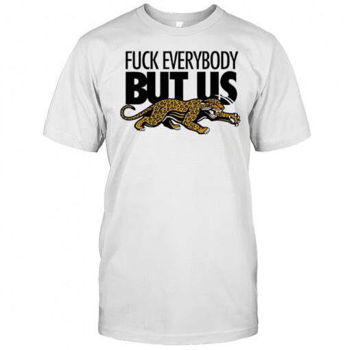 Elevate your fan game and make a bold statement with the Jacksonville Jaguars Fuck Everybody But Us logo shirt. It’s not just a shirt; it’s a declaration of your allegiance. Whether you’re a die-hard fan or looking for the perfect gift for a fellow Jaguars supporter, this shirt is a must-have addition to your collection. Don this shirt with pride on game days or any day to showcase your team spirit. Don’t miss out on the opportunity to own this exclusive piece that celebrates the Jaguars in a unique and bold way. Get your hands on the Jacksonville Jaguars Fuck Everybody But Us logo shirt today and let your fandom shine!