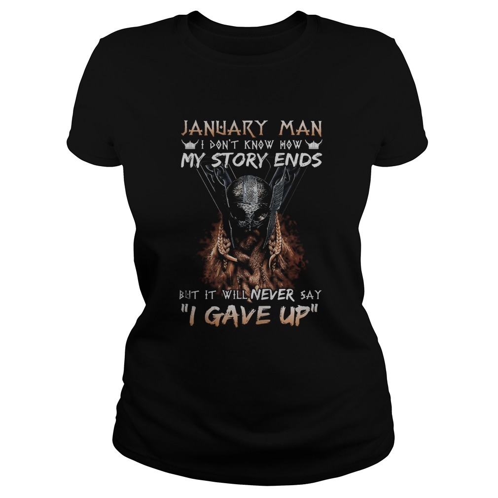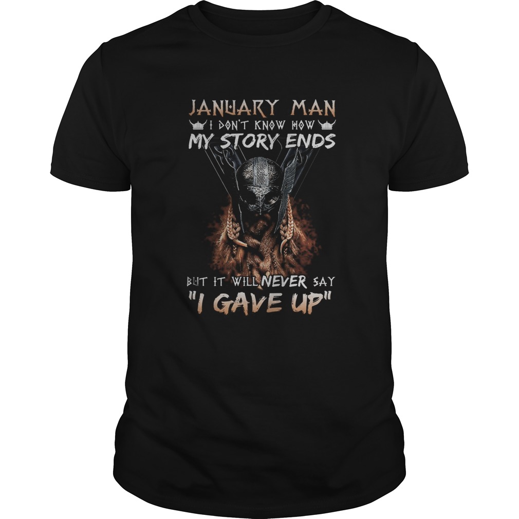 January man I dont know how my story ends but it will never say I gave up shirt, hoodie, sweater, longsleeve and ladies t-shirt