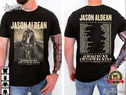 Elevate your style game and show off your passion for country music with the Jason Aldean Highway Desperado Tour T-Shirt. Embrace the essence of Aldean’s music and make a bold statement wherever you go. Crafted with soft, breathable fabric, this shirt ensures all-day comfort while keeping you effortlessly stylish. The eye-catching design captures the essence of adventure and the free spirit that defines Aldean’s music, allowing you to carry a piece of that energy with you. Whether you’re a die-hard fan or simply appreciate good music and great style, this shirt is a must-have addition to your collection. Don’t miss the chance to own a piece of music history – grab your own Jason Aldean Highway Desperado Tour T-Shirt today and let your fashion sense hit all the right notes!