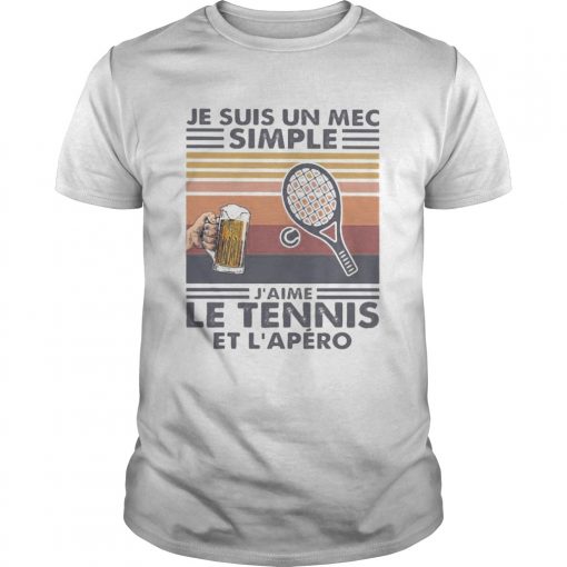 Je suis un mec simple jaime le tennis et lapero vintage retro shirt, hoodie, sweater, longsleeve and ladies t-shirt