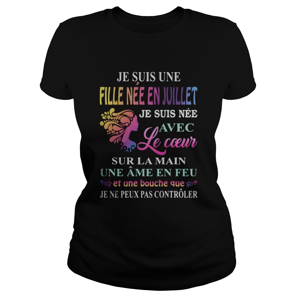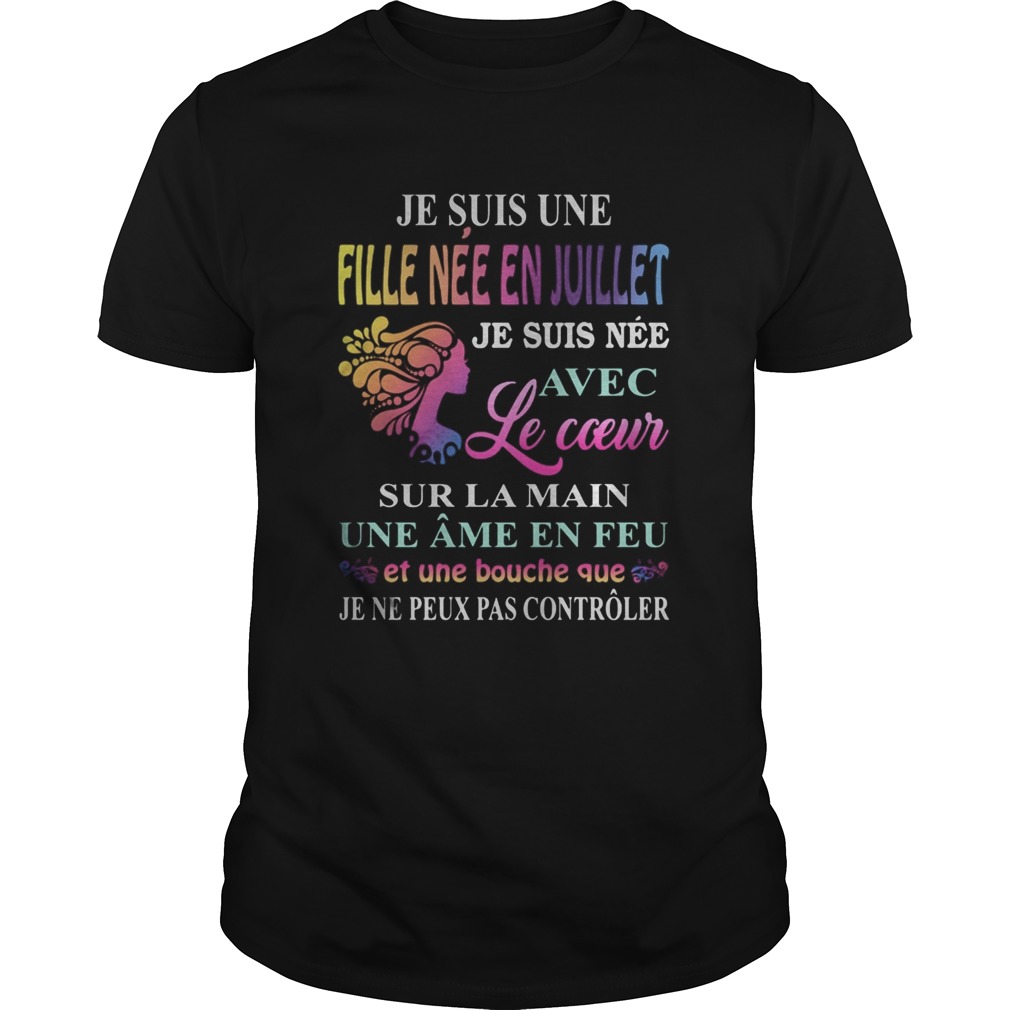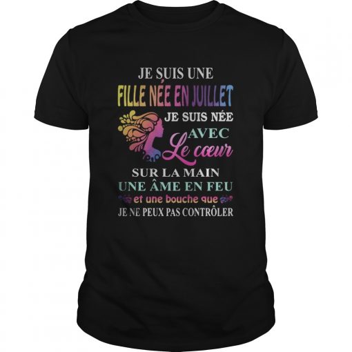 Je suis une fille nee en juillet je suis nee avec le cceur sur la main une ame en feu shirt, hoodie, sweater, longsleeve and ladies t-shirt