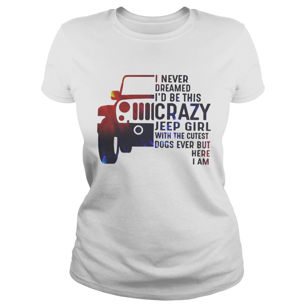 Jeep I never dreamed Id be this crazy Jeep girl with the cutest dogs ever but here I am shirt, hoodie, sweater, longsleeve and ladies t-shirt