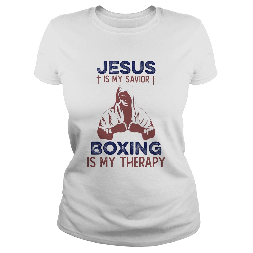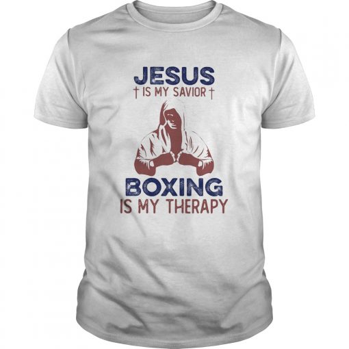 Jesus Is My Savior Boxing Is My Therapy Blue Red shirt, hoodie, sweater, longsleeve and ladies t-shirt