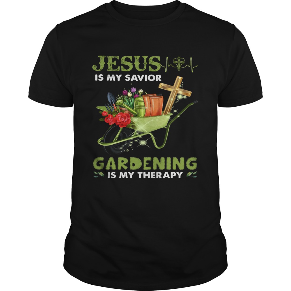 JESUS IS MY SAVIOR GARDENING IS MY THERAPY shirt, hoodie, sweater, longsleeve and ladies t-shirt