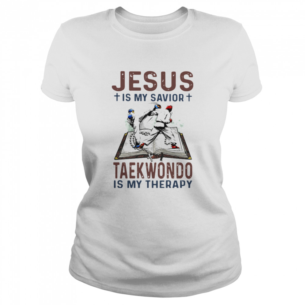 Jesus Is My Savior Taekwondo Is My Therapy shirt, hoodie, sweater, longsleeve and ladies t-shirt
