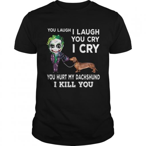 Joker You laugh I laugh you cry I cry you hurt my dachshund I kill you shirt, hoodie, sweater, longsleeve and ladies t-shirt