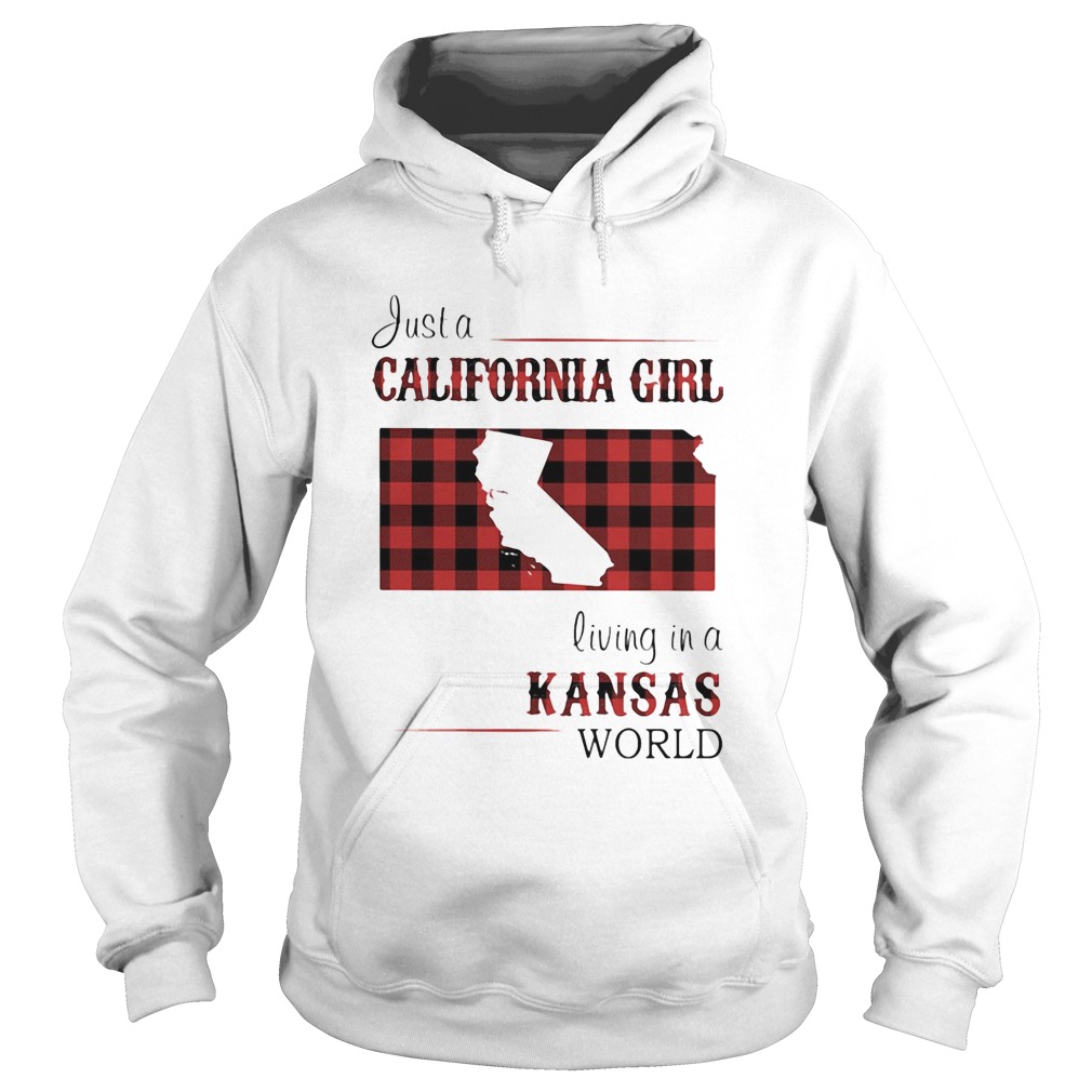 Just a California girl living in a Kansas world map shirt, hoodie, sweater, longsleeve and ladies t-shirt