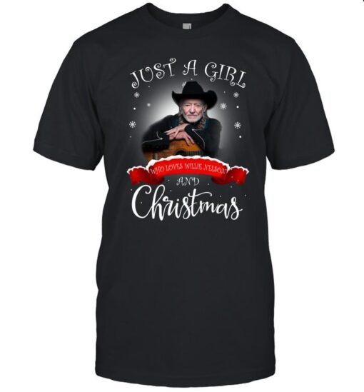 Just A Girl Who Loves Willie Nelson And Christmas T-Shirt, hoodie, sweater, longsleeve and ladies t-shirt