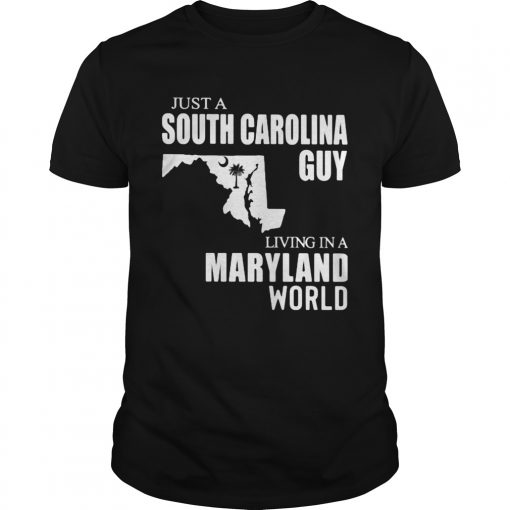 Just A South Carolina Guy Living In A Maryland World Map shirt, hoodie, sweater, longsleeve and ladies t-shirt