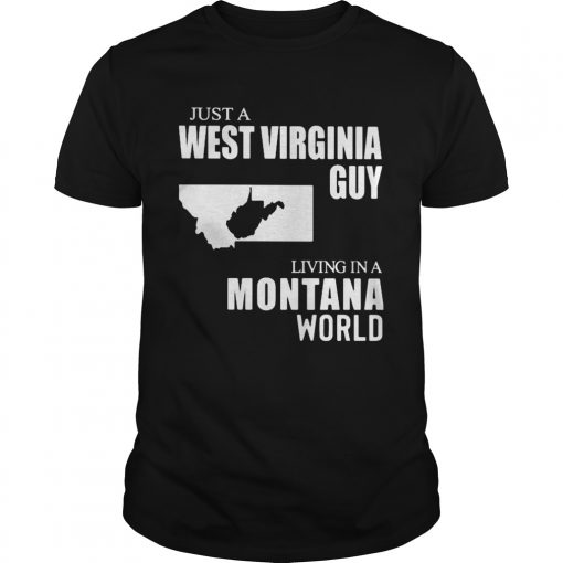 Just A West Virginia Guy Living In A Montana World Map shirt, hoodie, sweater, longsleeve and ladies t-shirt
