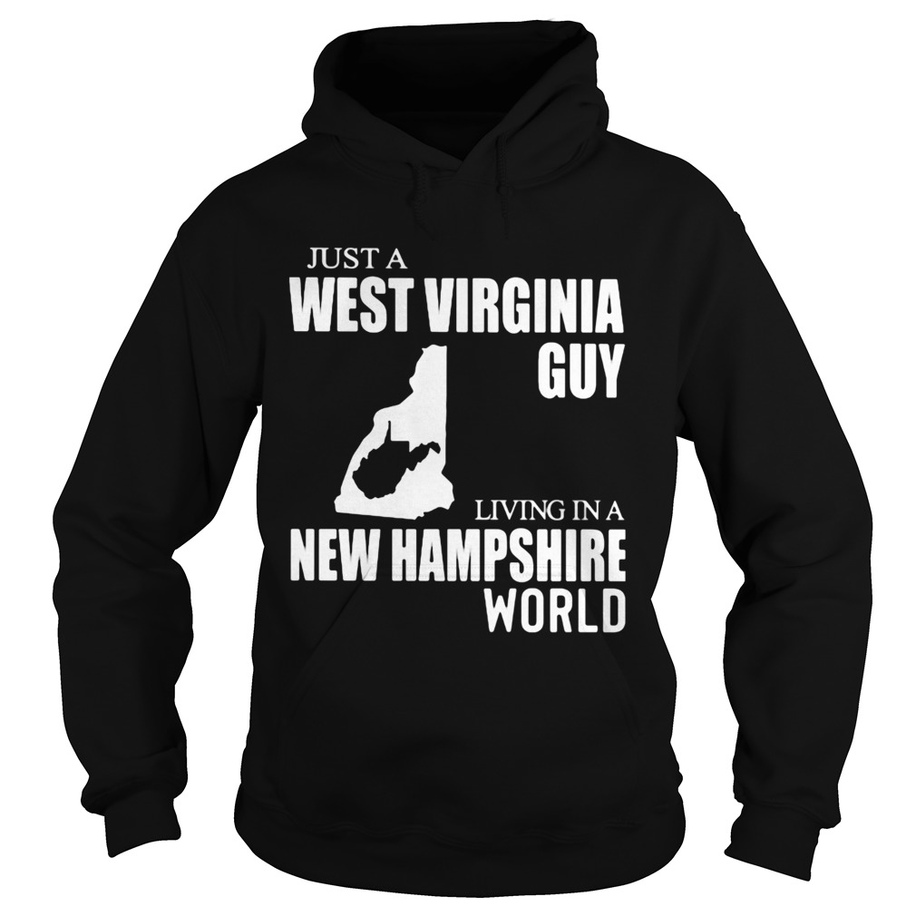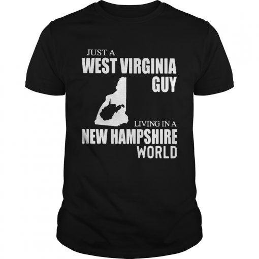 Just A West Virginia Guy Living In A New Hampshire World Map shirt, hoodie, sweater, longsleeve and ladies t-shirt