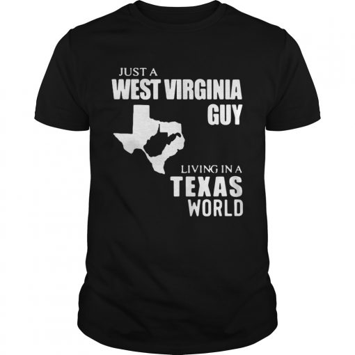 Just A West Virginia Guy Living In A Texas World shirt, hoodie, sweater, longsleeve and ladies t-shirt