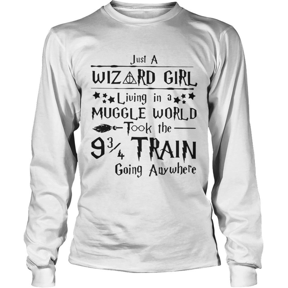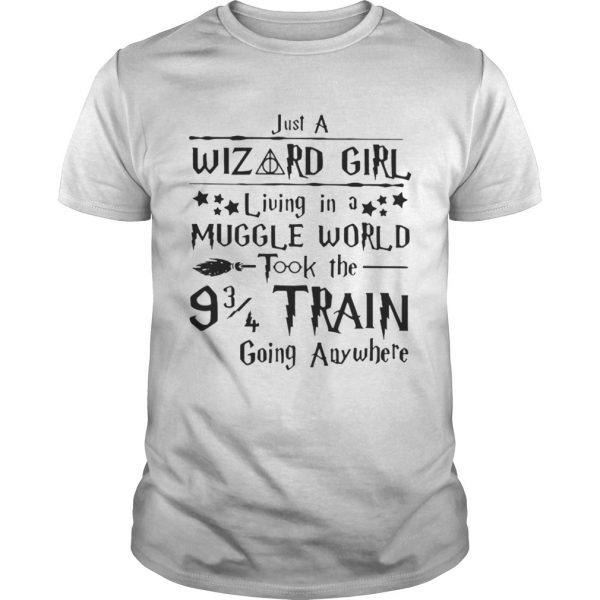 Just a wizard girl living in a muggle world took the 9 3 4 train going anywhere shirt