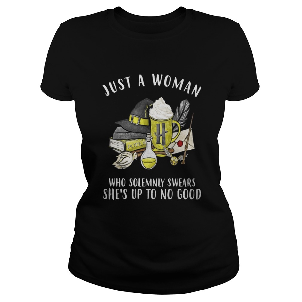 Best Just a woman Hufflepuff house who solemnly swears she’s up to no good shirt