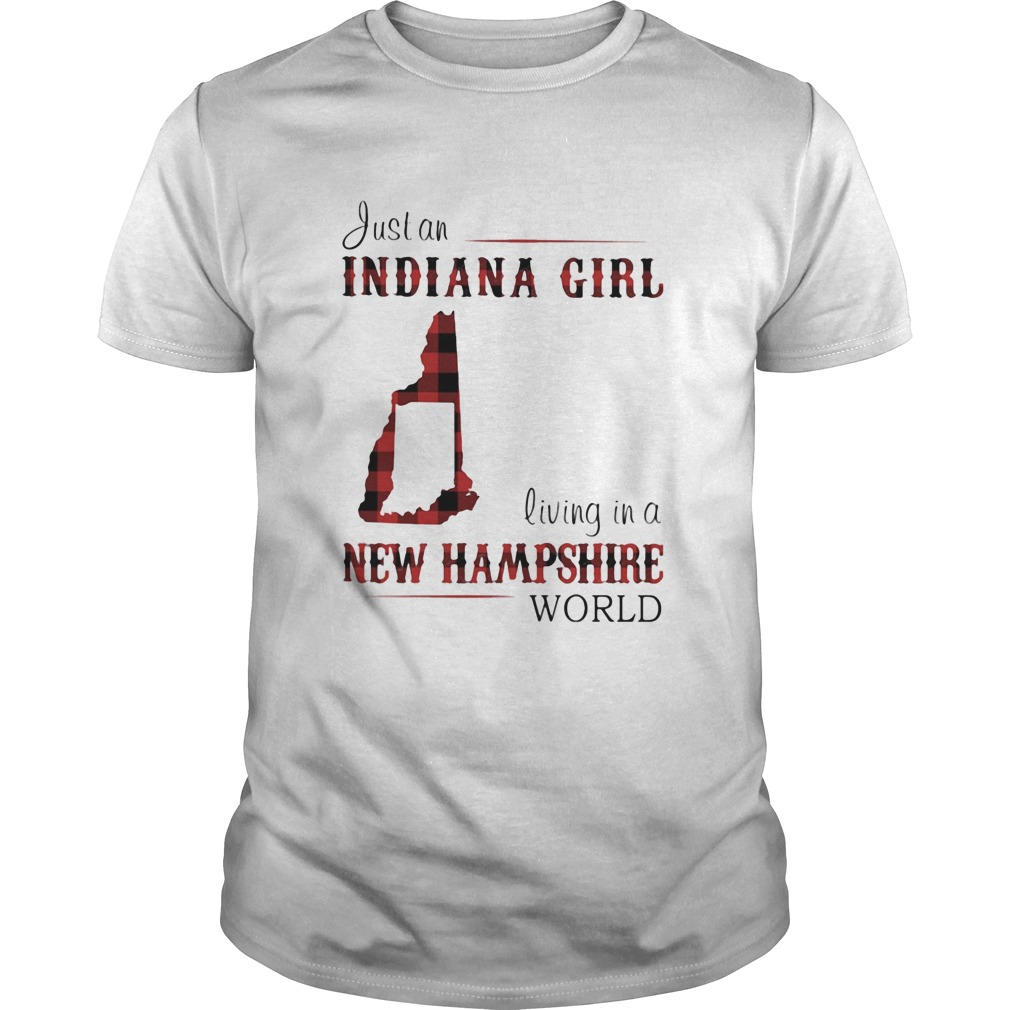 Just an Indiana girl living in a new hampshire world map shirt, hoodie, sweater, longsleeve and ladies t-shirt