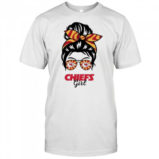 Kansas City Chiefs Girl Messy Bun Glasses shirt, hoodie, sweater, longsleeve and ladies t-shirt