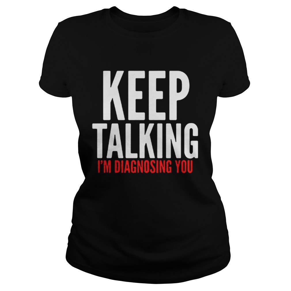And then again, when her own mother passed, she was strong and the Keep Talking I’m Diagnosing You Shirt. She was terribly close to her mother – they were like Lucy and Ethel, Wilma and Betty – you get the idea – and yet, despite the pain of losing her – my mother remained stoic. Years later, when my stepfather was diagnosed with cancer, mom faced it with him – taking him to appointments, treatments and follow up visits. Always supporting him through the process. Never wavering – always strong.