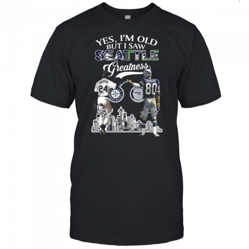 Are you a true Seattle sports fan who cherishes the golden era of legends like Ken Griffey Jr. and Steve Largent? Relive the glory days with our Ken Griffey Jr and Steve Largent Yes I’m old but I saw Seattle Mariners greatness shirt. This shirt isn’t just apparel; it’s a time machine that takes you back to the electrifying moments when Griffey swung his bat or Largent made those unbelievable catches. Every stitch of this shirt is a tribute to the greatness that once graced the fields and courts of the Emerald City. The iconic names boldly emblazoned on this shirt serve as a badge of honor for those who witnessed their heroics firsthand.
