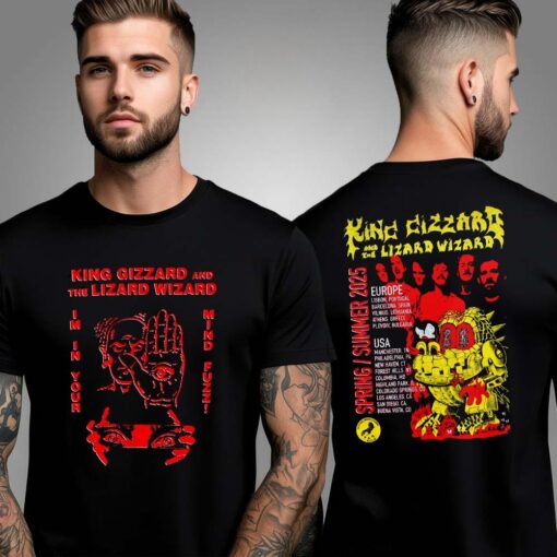Imagine yourself strolling through the festival grounds, the sun setting in the background, clad in this eye-catching King Gizzard Spring Summer Tour 2025 Tour Dates Schedule Two Sided Unisex T-Shirt. The vibrant colors and intricate design details will undoubtedly turn heads and spark conversations among fellow fans. Embrace the spirit of live music with this unique piece that captures the essence of the upcoming tour. Whether you’re a dedicated fan of King Gizzard or simply appreciate well-crafted apparel, this shirt is your ticket to making a bold fashion statement while showing your support for the music that moves you.