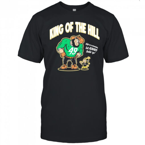 Get ready to show your unwavering support for the San Francisco 49ers in style with the King of the Hill San Francisco 49ers NFL high on a mountain but always lookin up shirt. This unique shirt is not just your average fan gear; it’s a statement piece that exudes team pride and determination. Imagine yourself perched high on a mountain, overlooking the competition, just like the 49ers dominate the field. The striking design featuring the team’s iconic logo will make you stand out in any crowd, whether you’re at the game, a tailgate party, or simply hanging out with friends. Crafted from high-quality materials, this shirt is as durable as it is eye-catching, ensuring that you can support your team for seasons to come.