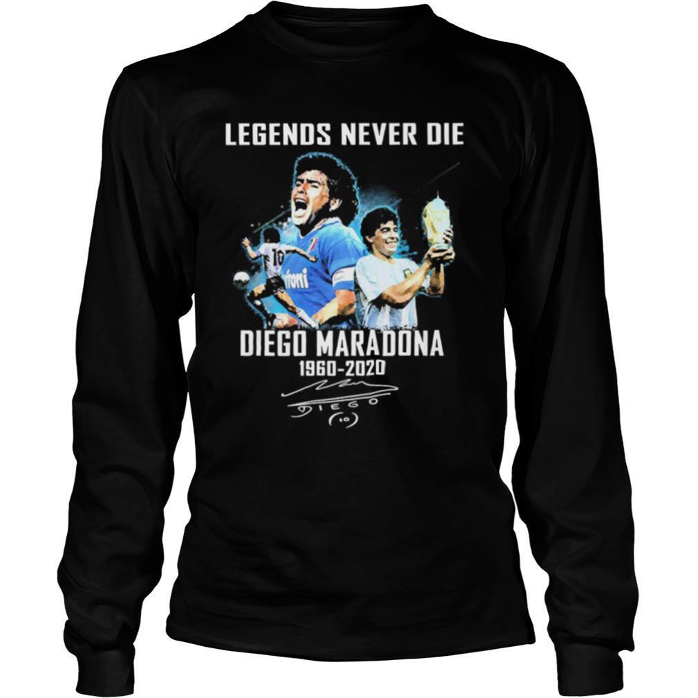 Legends Never Die Diego Maradona 1960 2020 Signature shirt, hoodie, sweater, longsleeve and ladies t-shirt