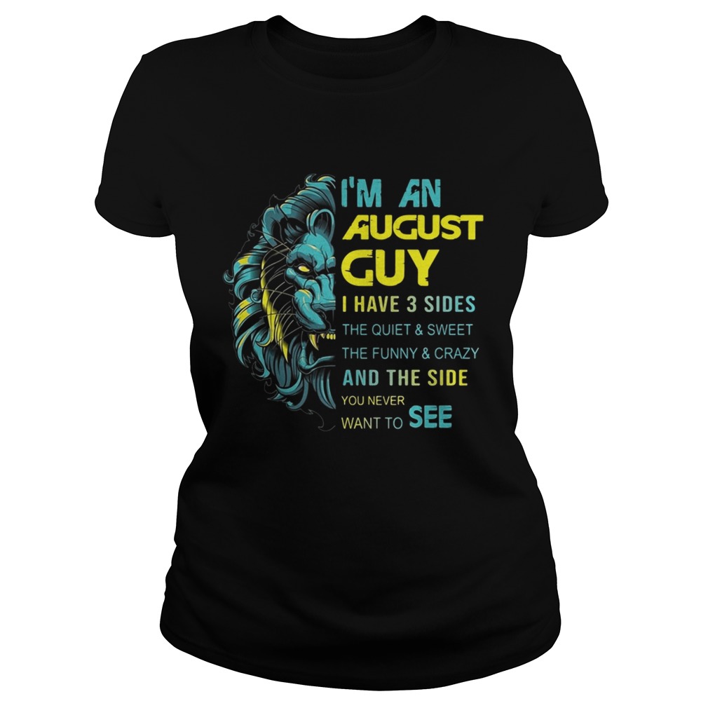 Leo Im an August guy I have 3 sides the quiet and sweet shirt, hoodie, sweater, longsleeve and ladies t-shirt