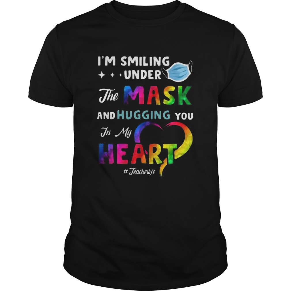 Lgbt im smiling under the mask and hugging you in my heart teacher life shirt, hoodie, sweater, longsleeve and ladies t-shirt