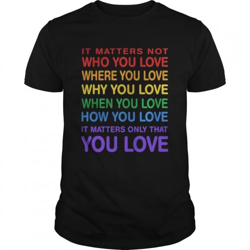 LGBT it matters not who you love where you love why you love when you love how you love it matters, hoodie, sweater, longsleeve and ladies t-shirt