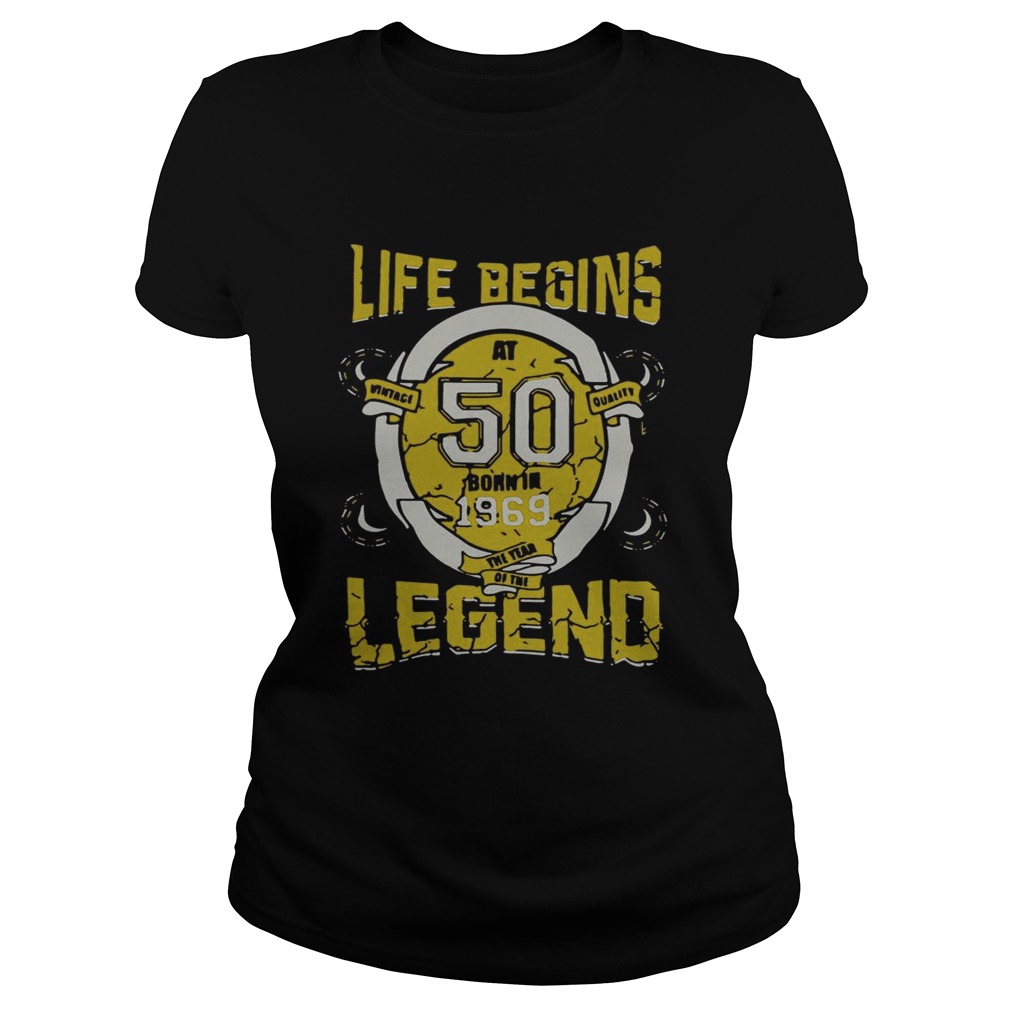 Life begins at 50 born in 1969 the year of the legend Unisex adult tshirt