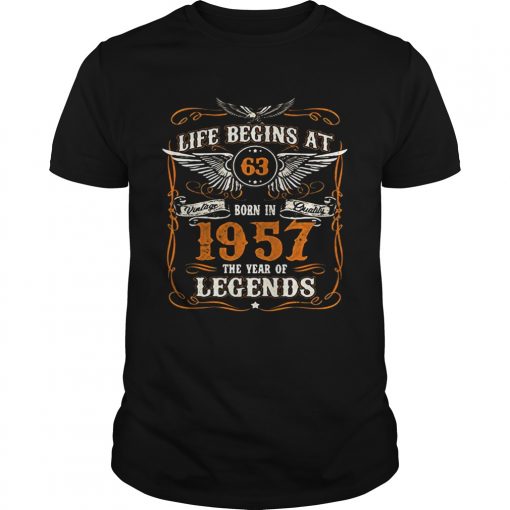 Life Begins At 63 Born In 1957 The Year Of Legends shirt, hoodie, sweater, longsleeve and ladies t-shirt