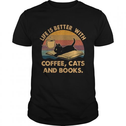 Life Is Better With Coffee Cats And Books Vintage shirt, hoodie, sweater, longsleeve and ladies t-shirt