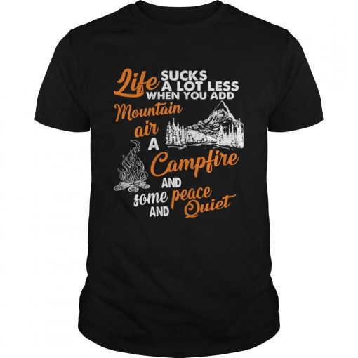 LIFE SUCKS A LOT LESS WHEN YOU ADD MOUNTAIN AIR A CAMPFIRE AND SOME PEACE AND QUIET shirt, hoodie, sweater, longsleeve and ladies t-shirt