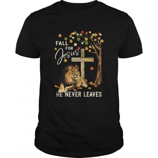 Lion Fall For Jesus He Never Leaves shirt, hoodie, sweater, longsleeve and ladies t-shirt
