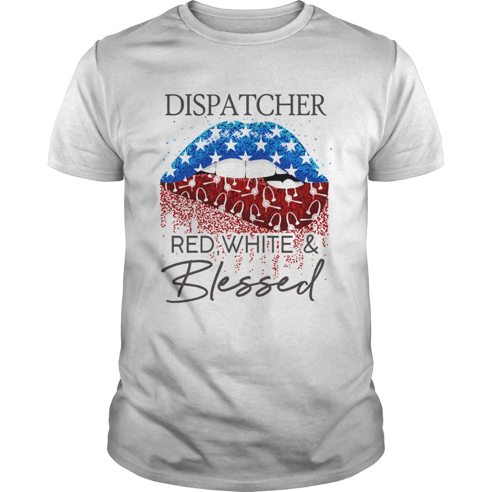 Lips dispatcher red white and blessed american flag independence day shirt, hoodie, sweater, longsleeve and ladies t-shirt