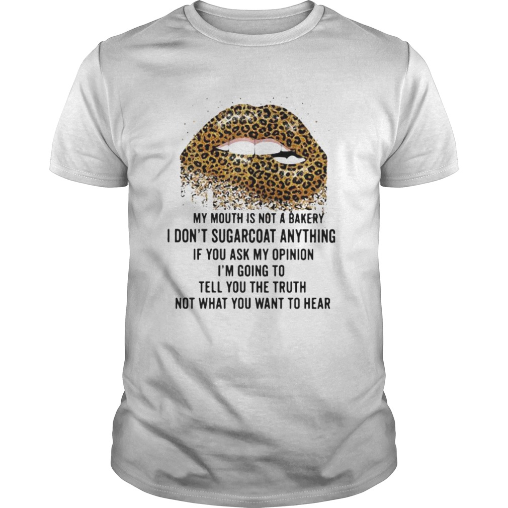 Lips leopard my mouth is not a bakery i dont sugarcoat anything if you ask my opinion im going to, hoodie, sweater, longsleeve and ladies t-shirt