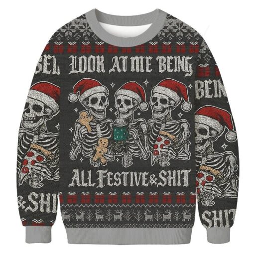 Look at Me Being Festive Skeleton Christmas Ugly Sweatshirt, hoodie, sweater, longsleeve and ladies t-shirt