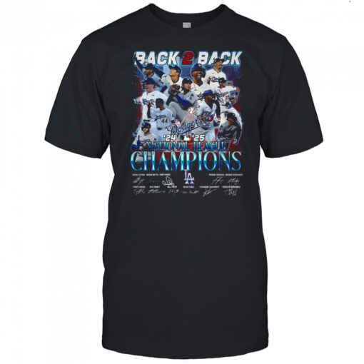 Los Angeles Dodgers baseball 2025 National League Champions back to back signature shirt, hoodie, sweater, longsleeve and ladies t-shirt