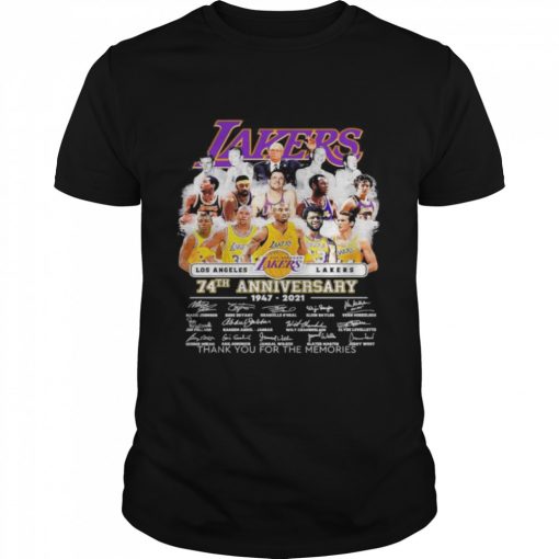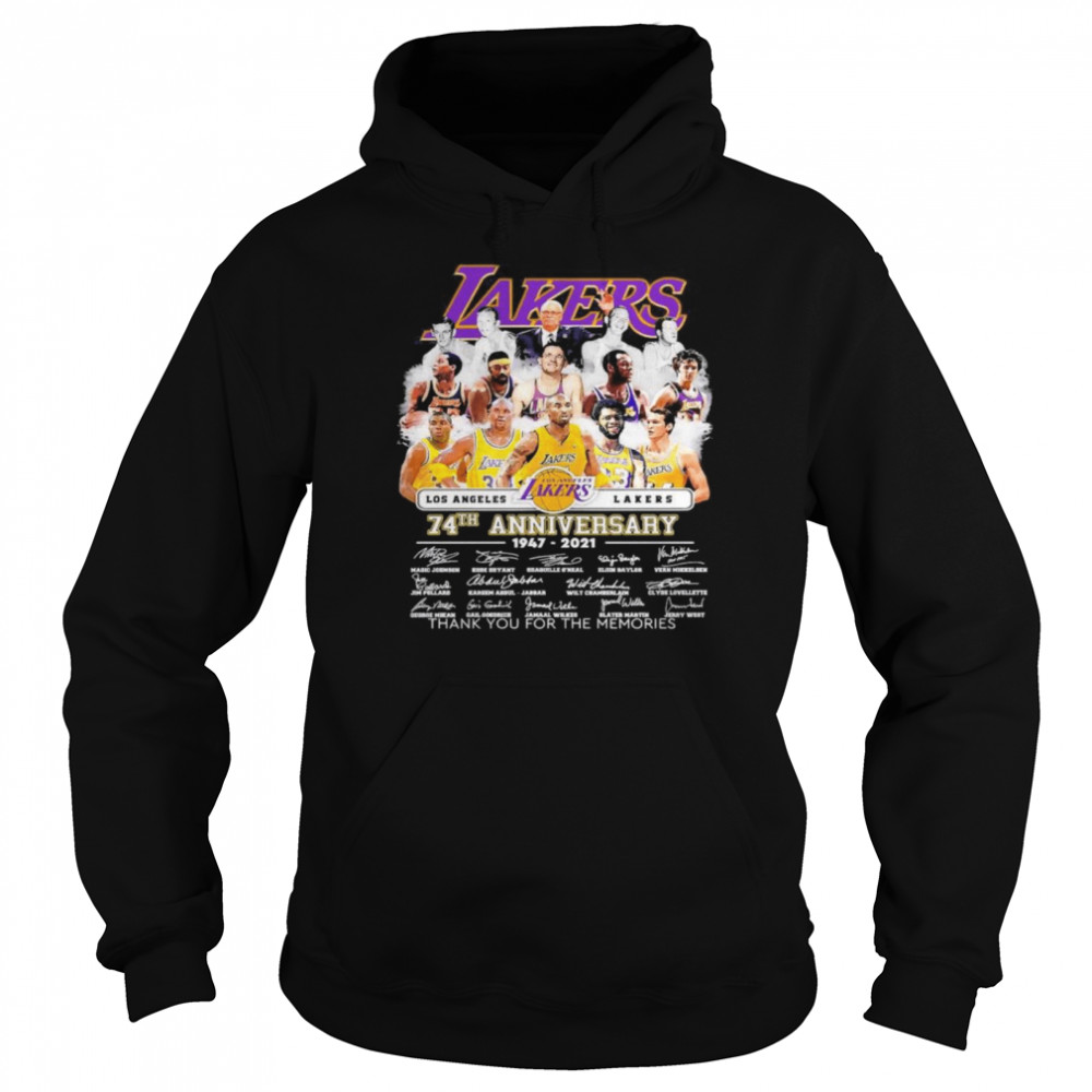 Los Angeles Lakers 74th anniversary thank you for the memories signatures shirt, hoodie, sweater, longsleeve and ladies t-shirt