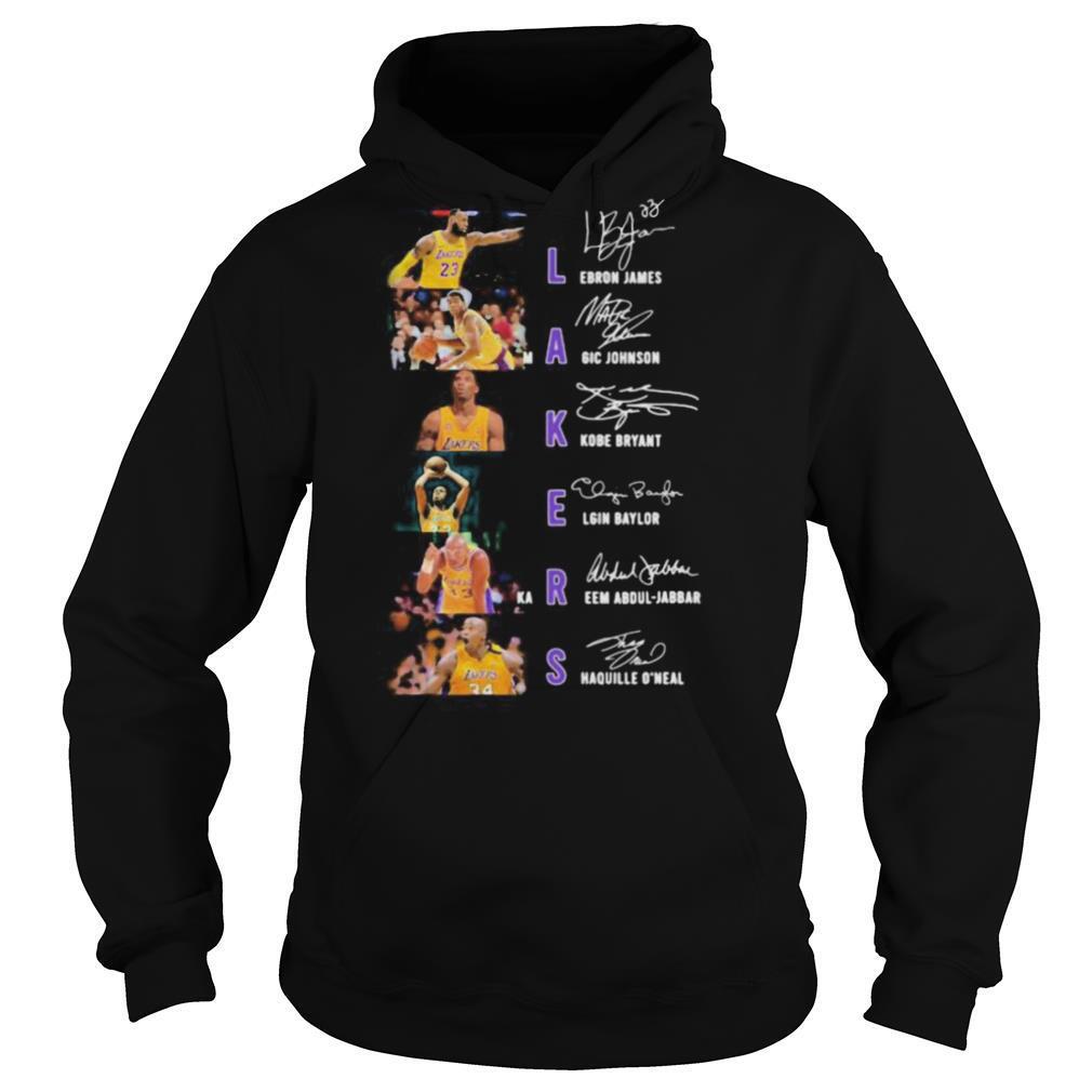 (Hoodie Tee)She has been trying to maintain “something that resembles training, which has not been easy when you’re in the lounge with two dogs running around your ankles and stealing your equipment Los angeles lakers basketball signatures shirt. She’s just starting to hit the court again with one of her coaches (with strict social distancing policies in place), but will miss “that first hit on grass coming from the clay in Paris.” She wears her retro-inspired high performance Ellesse whites, but notes: “It’s not just the players that dress up at Wimbledon though.” She loves to take in the effort put into the outfits in the stands. “Seeing the suits and dresses, big hats – it just feels so romantic and impressive. Enjoying art out of town is also still in question, even with loosening restrictions. The work of British Indian sculptor Anish Kapoor has been installed in the majestic Palladian setting of Houghton Hall and is awaiting the green light to open.