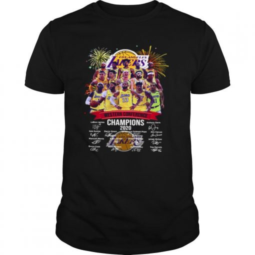 (Hoodie Tee)She has been trying to maintain “something that resembles training, which has not been easy when you’re in the lounge with two dogs running around your ankles and stealing your equipment Los Angeles Lakers Western Conference Champions 2020 Signatures shirt. She’s just starting to hit the court again with one of her coaches (with strict social distancing policies in place), but will miss “that first hit on grass coming from the clay in Paris.” She wears her retro-inspired high performance Ellesse whites, but notes: “It’s not just the players that dress up at Wimbledon though.” She loves to take in the effort put into the outfits in the stands. “Seeing the suits and dresses, big hats – it just feels so romantic and impressive. Enjoying art out of town is also still in question, even with loosening restrictions. The work of British Indian sculptor Anish Kapoor has been installed in the majestic Palladian setting of Houghton Hall and is awaiting the green light to open.