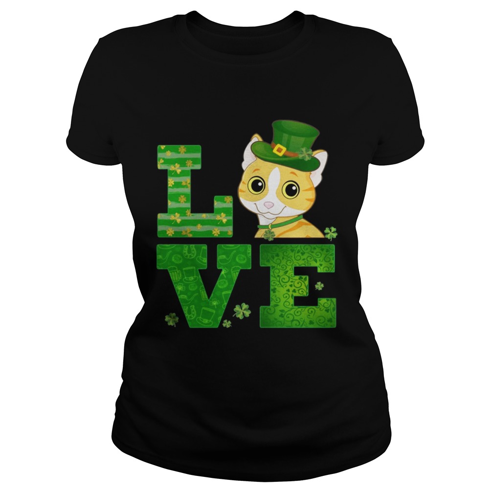 Best Love Cat St Patricks Day Green Shamrock T-Shirt