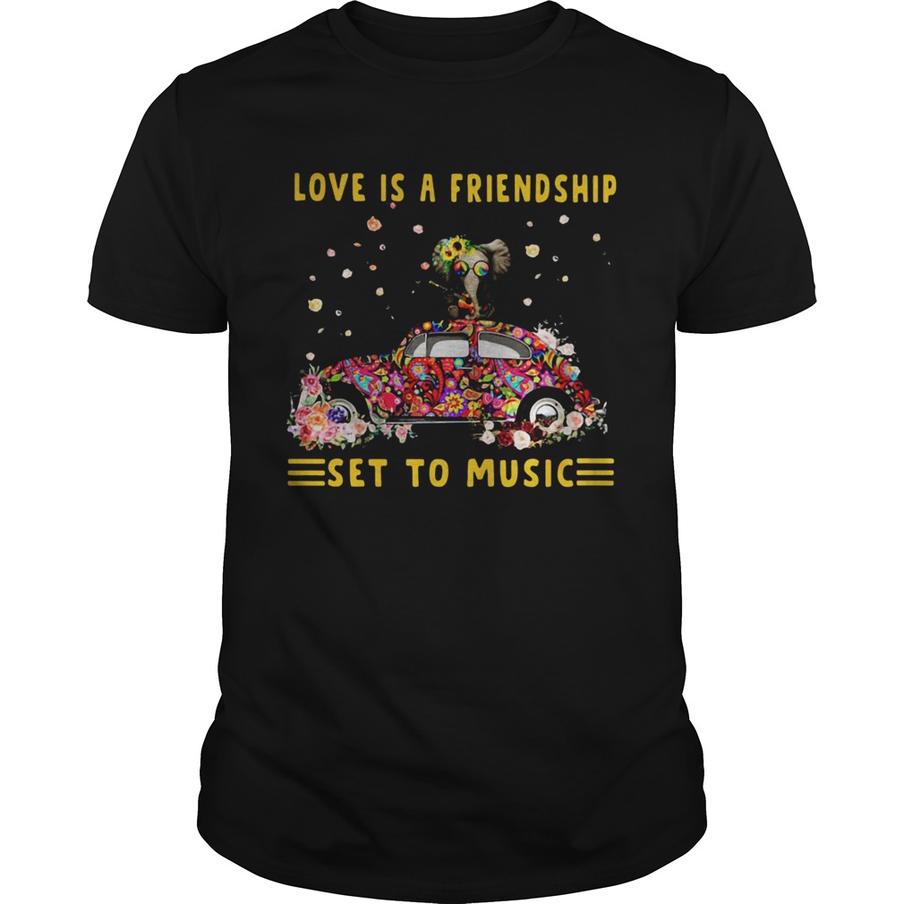 Love Is A Friendship Set To Music Elephant Hippie shirt, hoodie, sweater, longsleeve and ladies t-shirt