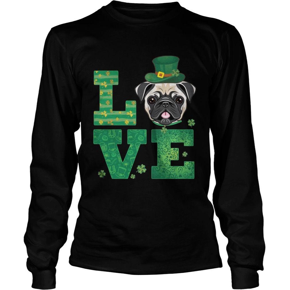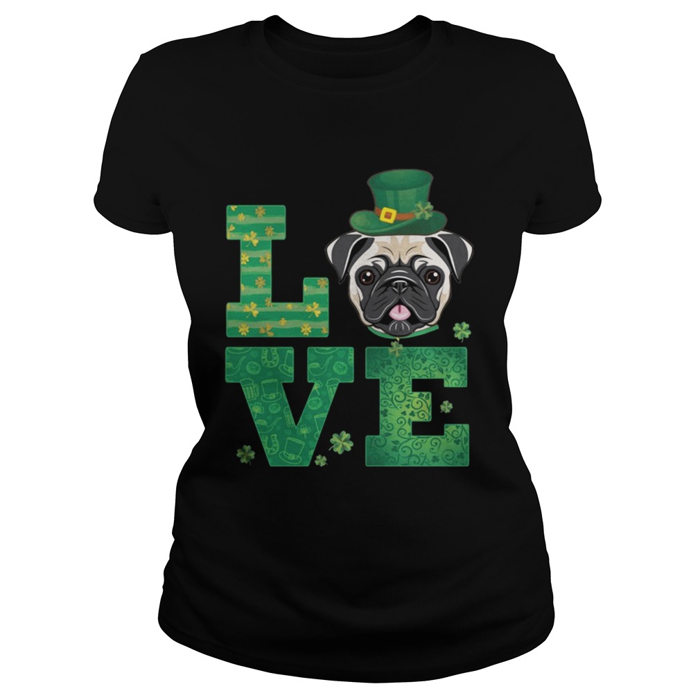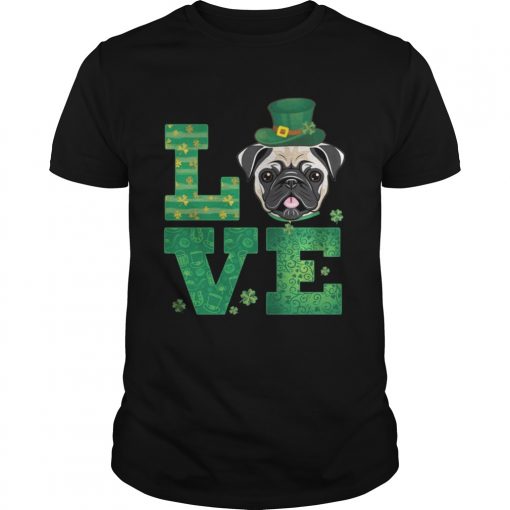 Love Pug St Patricks Day Green Shamrock T-Shirt