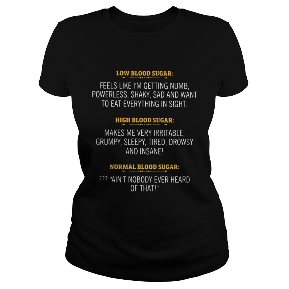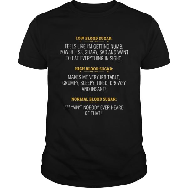 Low High Normal Blood Sugar Feels Getting Numb Makes Irritable Shirt