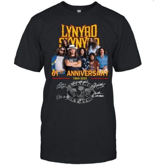 Ready to elevate your style and show your devotion to the legendary Lynyrd Skynyrd? Don’t wait any longer – grab your own Lynyrd Skynyrd 61st Anniversary 1964–2025 Signatures T-Shirt now! With its unique design and authentic signatures, this shirt is a must-have for every true fan. Whether you’re attending a concert, hanging out with friends, or simply want to make a statement, this t-shirt is guaranteed to turn heads and spark conversations. Embrace the spirit of classic rock and celebrate over six decades of unforgettable music with this exclusive piece. Make a bold statement, stand out from the crowd, and let your love for Lynyrd Skynyrd shine through. Order your t-shirt today and rock on in style!