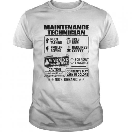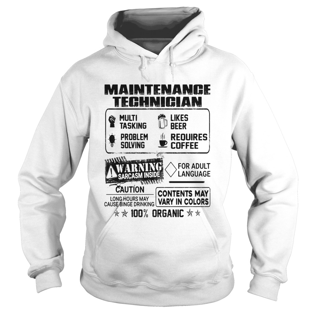 Maintenance technician warning sarcasm inside caution contents may vary in color 100 percent organi, hoodie, sweater, longsleeve and ladies t-shirt