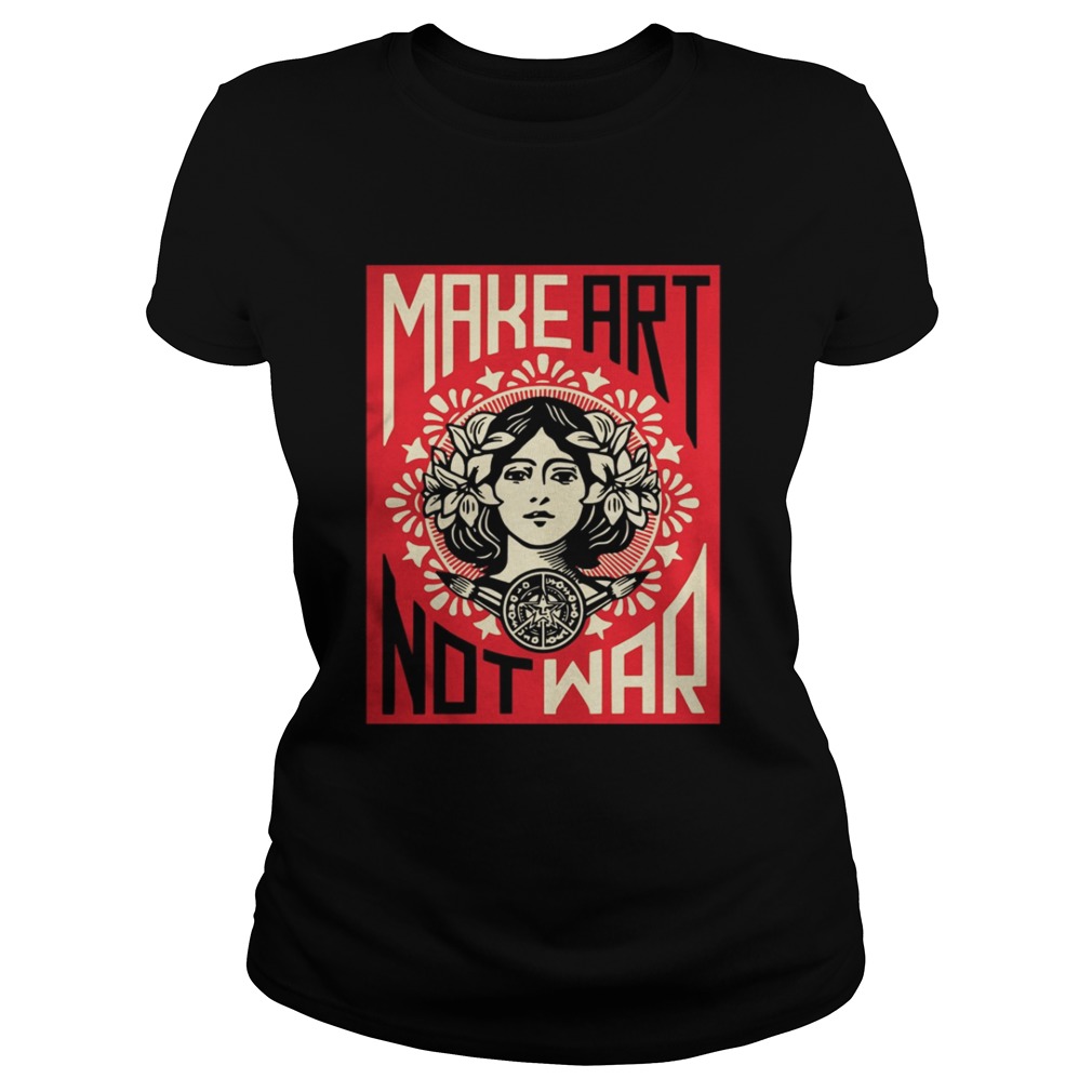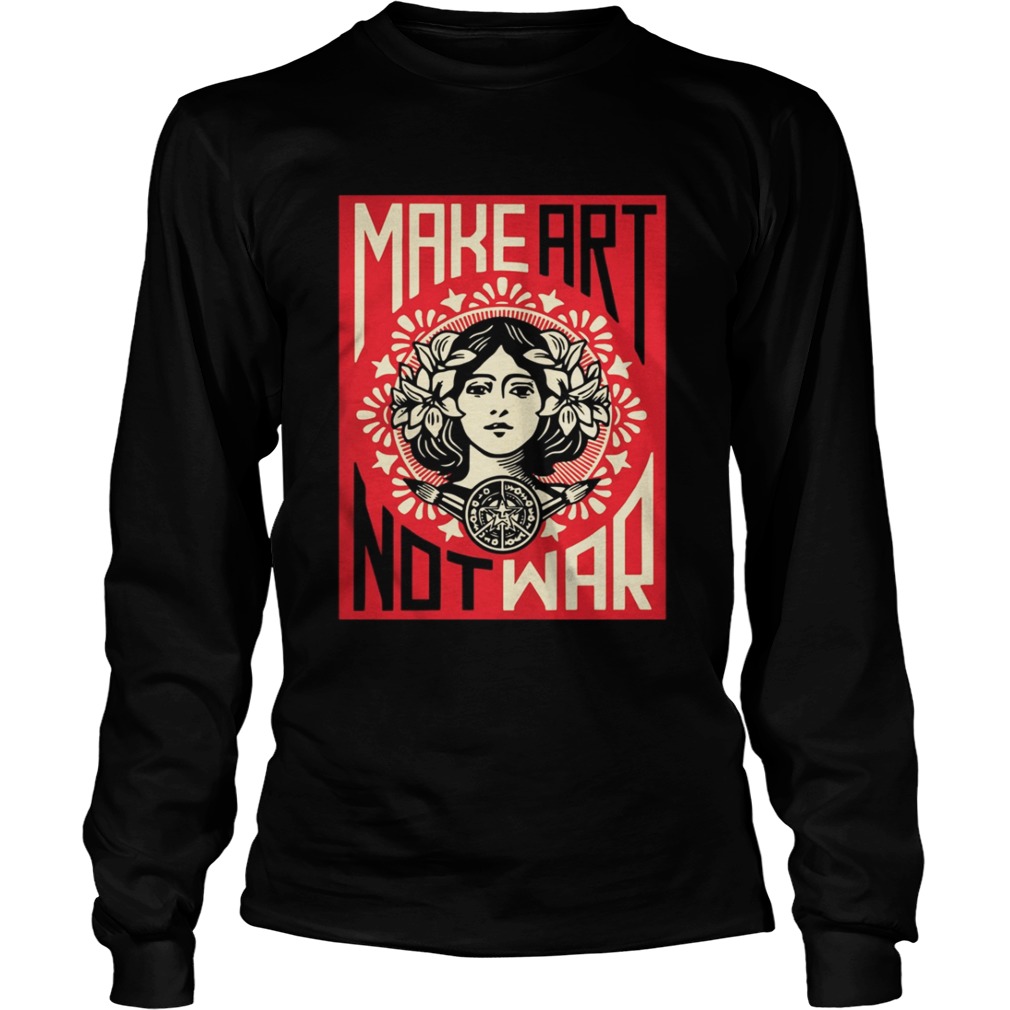 I have letters my grandfather wrote during. He was starting France and his letters home to his girl, who later became my grandmother, give a Make Art Not War Shirt at a soldiers life and feelings. One of time most powerful ones describes a day he spent burying the dead. My grandfather was exposed to mustard gas during wwi which damaged his lungs. He was an old man before he ever received help for it. His family suffered because he was not well, during the depression even well people had a hard time getting jobs and there was not the safety net that we have now. This is good, but the kids in UK should be taught how they colonized and looted India for 300 years. I do not think their history books reflect that. As someone who actually knew him he was a hero and a gentle giant. He died trying to protect his fellow soldiers and innocent people.